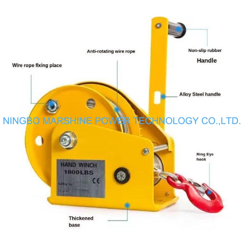 Un crochet sécurisé sur lequel les verres sur les charges sont capables d'empêcher les glissements pendant l'utilisation, qui est une caractéristique clé du treuil de câble de treuil à main portable Marshine 1800lb qui peut le faire garantir que les charges resteront stables sur les tâches.