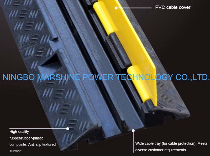 notre couvre-câble MARSHINE est capable de protéger les câbles électriques et de communication contre les dommages mécaniques sur les chantiers industriels et de construction, et peut maintenir les câbles organisés tout en empêchant les risques de trébuchement dans l'espace public, ou être utilisé pour assurer le passage en toute sécurité des véhicules et des travailleurs sur les lignes électriques.