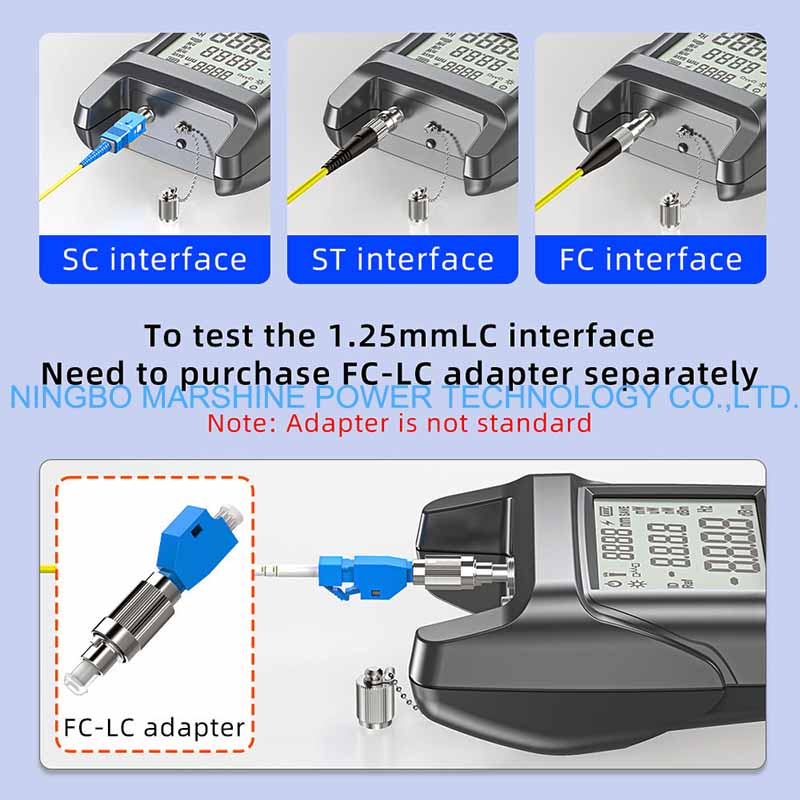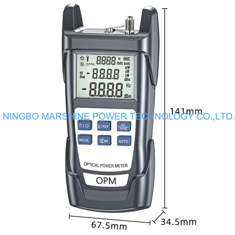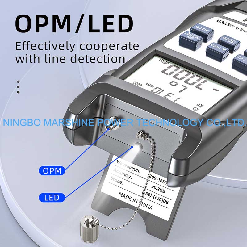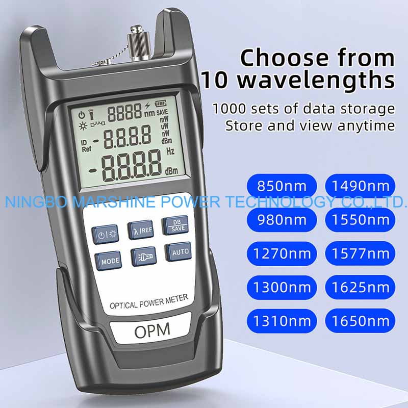 Le testeur OPM de wattmètre de l'outil de dépannage de fibre optique MARSHINE peut être utilisé pour tester toutes les longueurs d'onde optiques standard du réseau de fibre (par exemple 850 nm, 1 310 nm, 1 490 nm et 1 550 nm), applicable à la fois au multimode et au monomode.